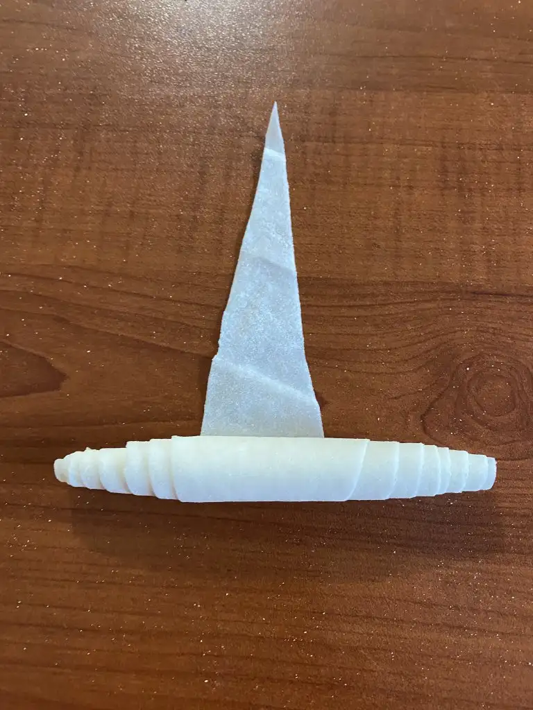 Yufkayı serip, pizza dilimi şeklinde parçaya bölelim.