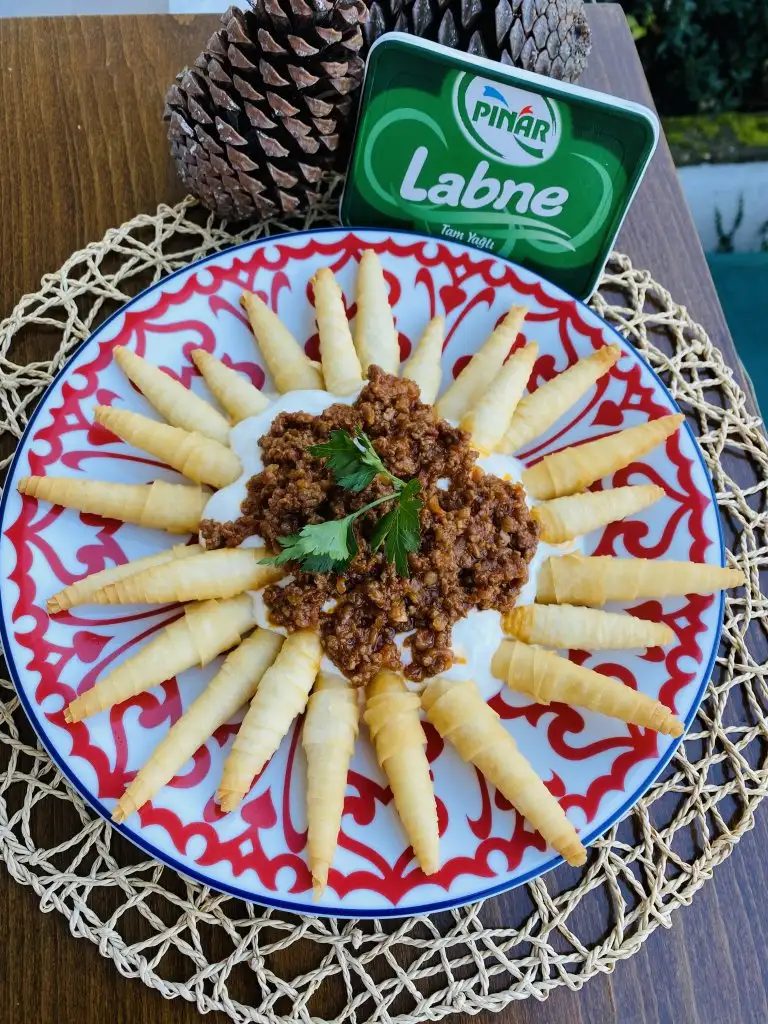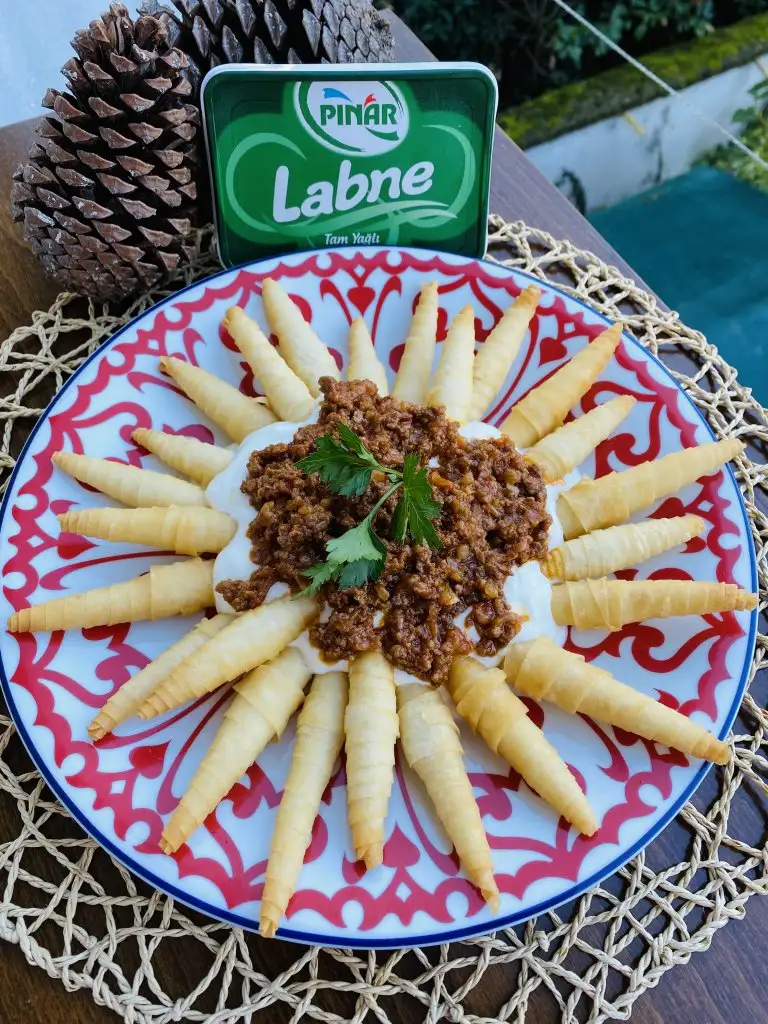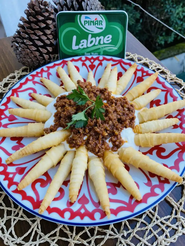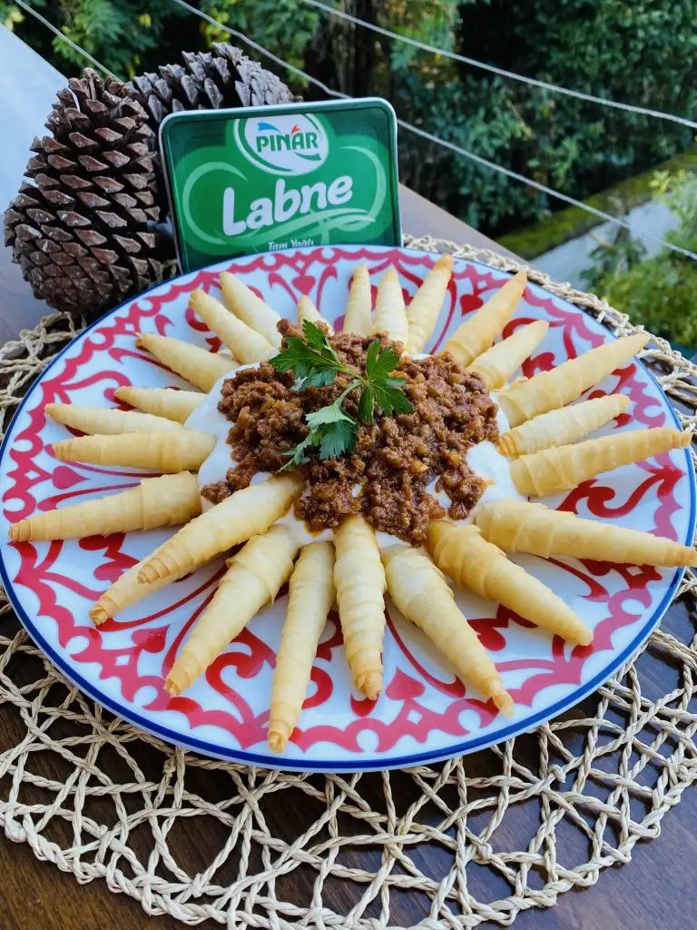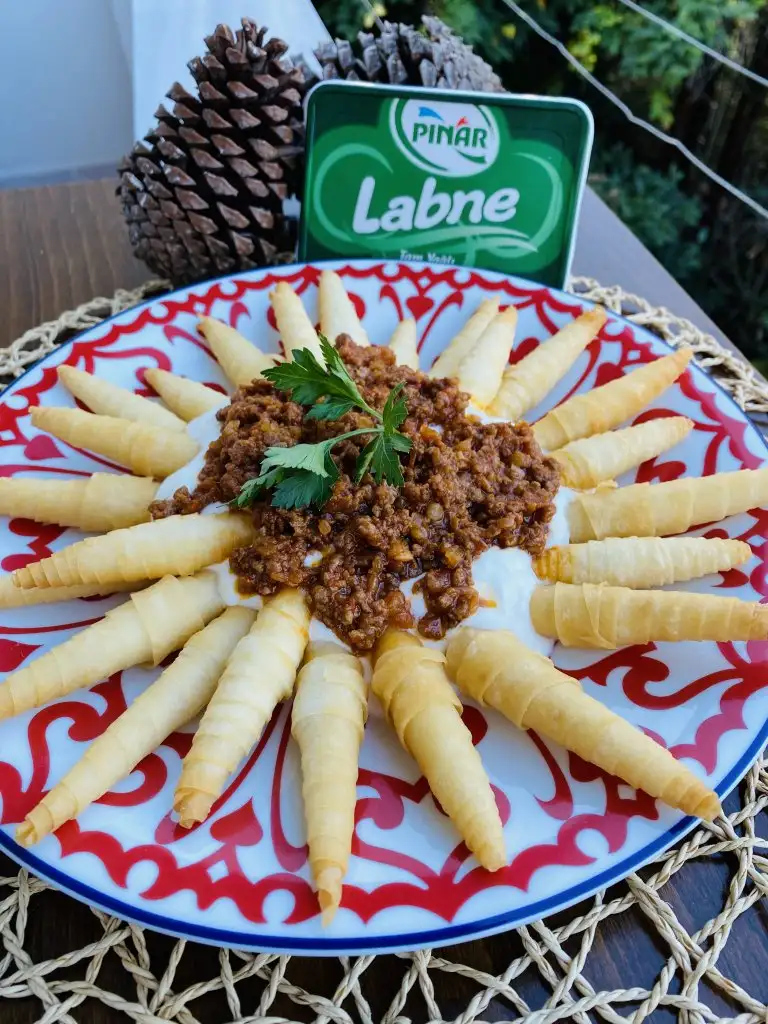 Mantılarımızın üzerine Pınar Labneli yoğurt ve kıymalı harcımızı dökerek servis edelim.