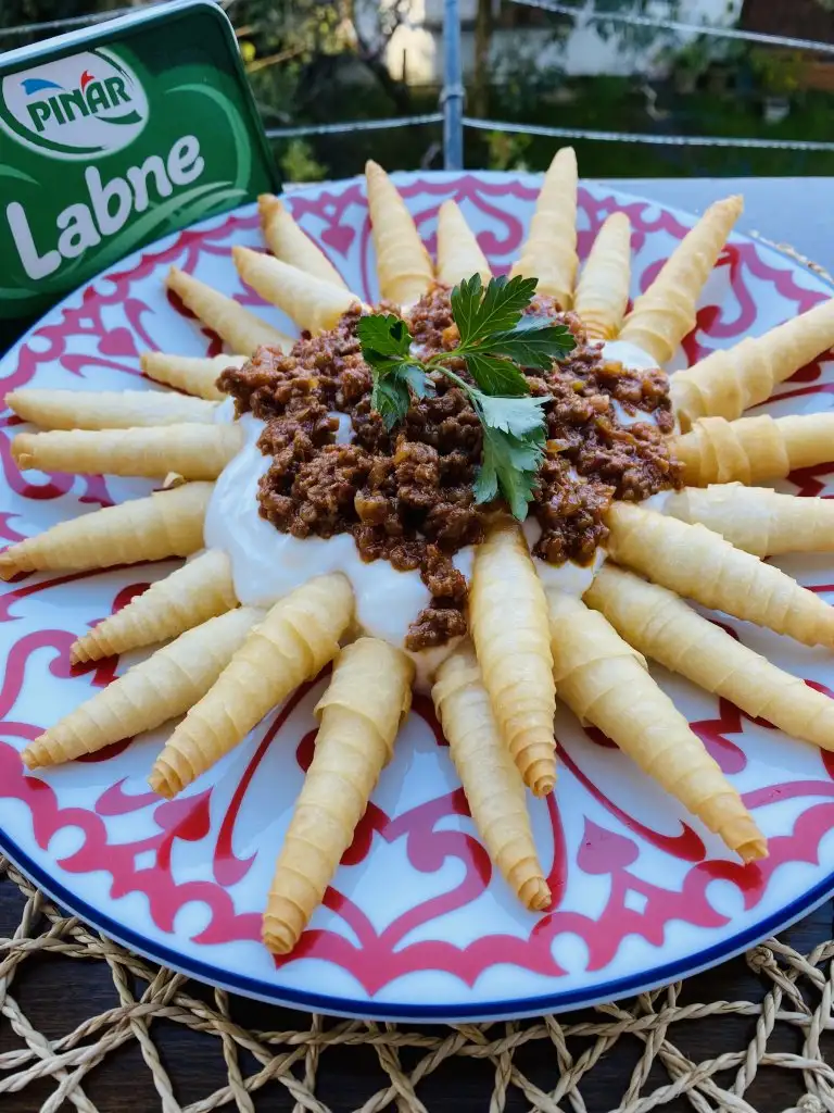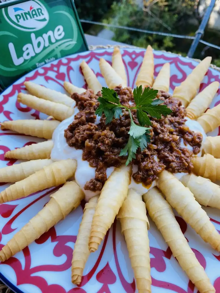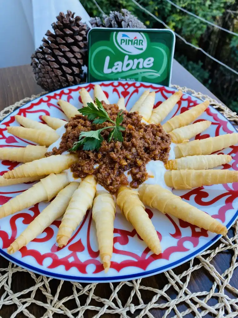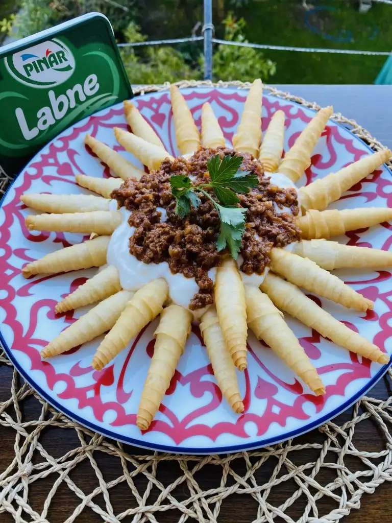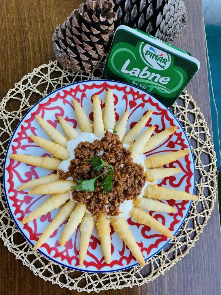 Mantılarımızın üzerine Pınar Labneli yoğurt ve kıymalı harcımızı dökerek servis edelim.