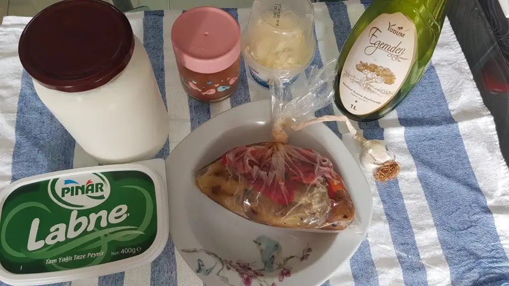 • Uygun bir kap içerisine aldığımız yoğurdun içerisine rendelenmiş sarımsak, labne ve tuzu ekleyerek pürüzsüz bir kıvam alana kadar çırpalım.