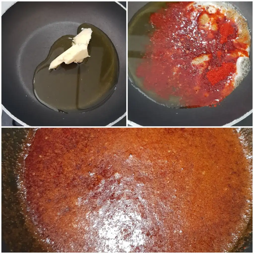 • Üzerine yağda kızdırılmış pul biber ve kırmızı biber gezdirerek servis edelim.
