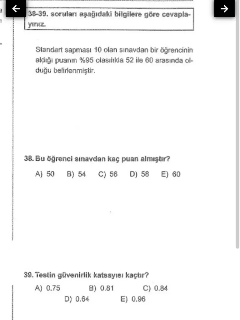 Bunlar ölçme değerlendirme dersi mi? İstatistik dersinde bu tarz soruları görmüştüm bende.Kızlar şu sorulara bi bakar mısınız