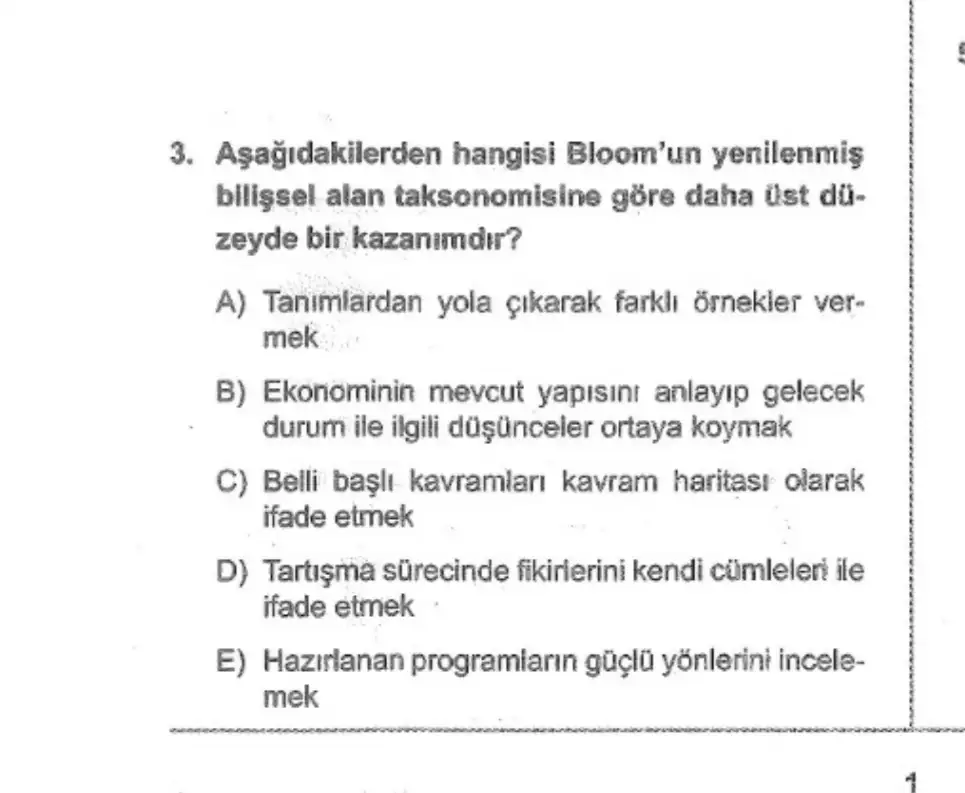 Yenilenmiş taksonomide son basamak değerlendirme değil sentez. Ama yine de E bana çok mantıksız geldi ben de B demiştim. Bana bu sorular çok zor geldi ya ösym daha basit soruyo bence