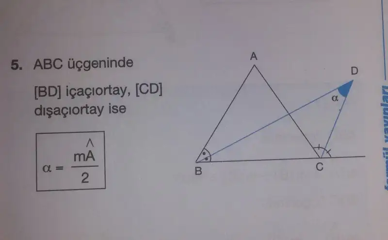 Kural bu. Dış açıortaydan böyle kelebek gibi o iki kanat 90 derece oluyor ve birbirine eşit oluyor...