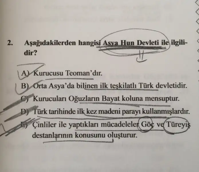 orta asyada kurulmuş bi devlet asya hun, ilk teşkilatlı devlet diyor...
