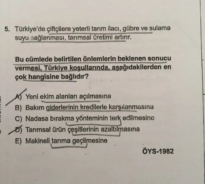 Cevap yanlış demekki cnn. Ben eminim.Safransari ben de öyle yaptım cevabı ama kitapta d şıkkı demiş. engebe ve eğim az olması diyor. Soru cevabı yanlış mı sence de? sonuçta iç anadoluda da eğim ve engebe de az oralarda da yetişirdi sadece engebeye bağlı olsaydı.