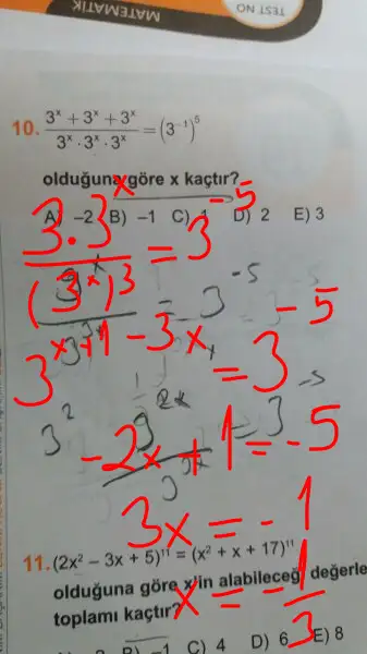 Maşallah mat iyibu soru yanlis cevabi. senin hatan da; 3 uzeri x var ya ust pay kisminda o 9 uzeri x diye yazilmaz. 3 uzeri x carpi 3 diye olacak... 3 tane 3 uzeri x var orada...