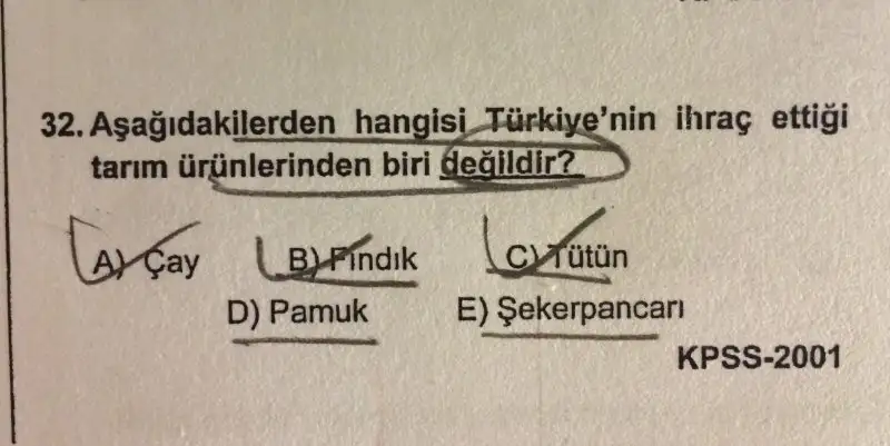 bi de ben bakayım sorulara.. 2001 varsa tabiarkadaşlar çayı ihraç etmiyor muyuz biz? E ben haberlerde görmüştüm ihraç ettiğimizi. Hatta üşenmedim google a bile baktım kaç tane ülkeye ihraç etmişiz. crvap çay diyor
