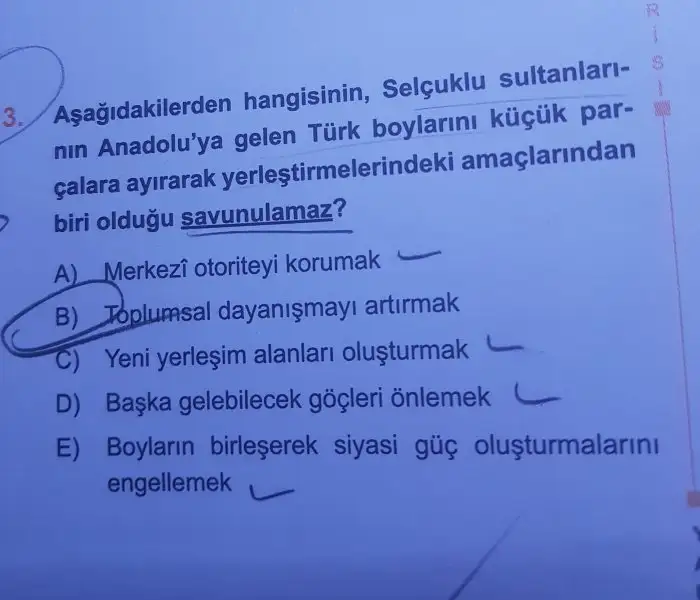 Kızlarcım bu sorunun cevabı D'ymiş ama B'de de bir gariplik yok mu sizce? Adam boyları küçük parçalara ayırıyor zaten niye toplumsal dayanışmayı artırmak istesin azaltmak ister. Ben mi yanlış düşünüyorum?