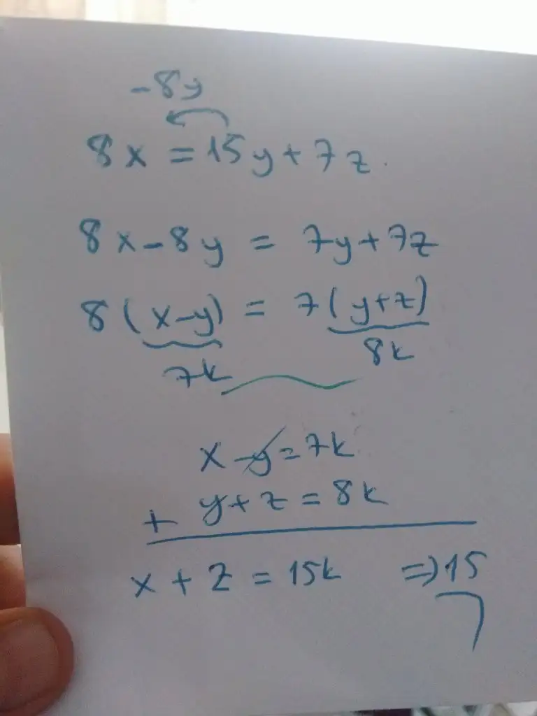 (x-y) ile (y+z) aralarında asal doğal sayılardır. 8x=15y+7z olduğuna göre, x+z toplamı kaçtır ?
