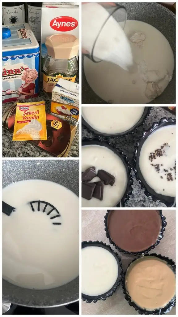 Sütü,şekeri,nişastayı ,unu tencereye alıp kaynatıyoruz.