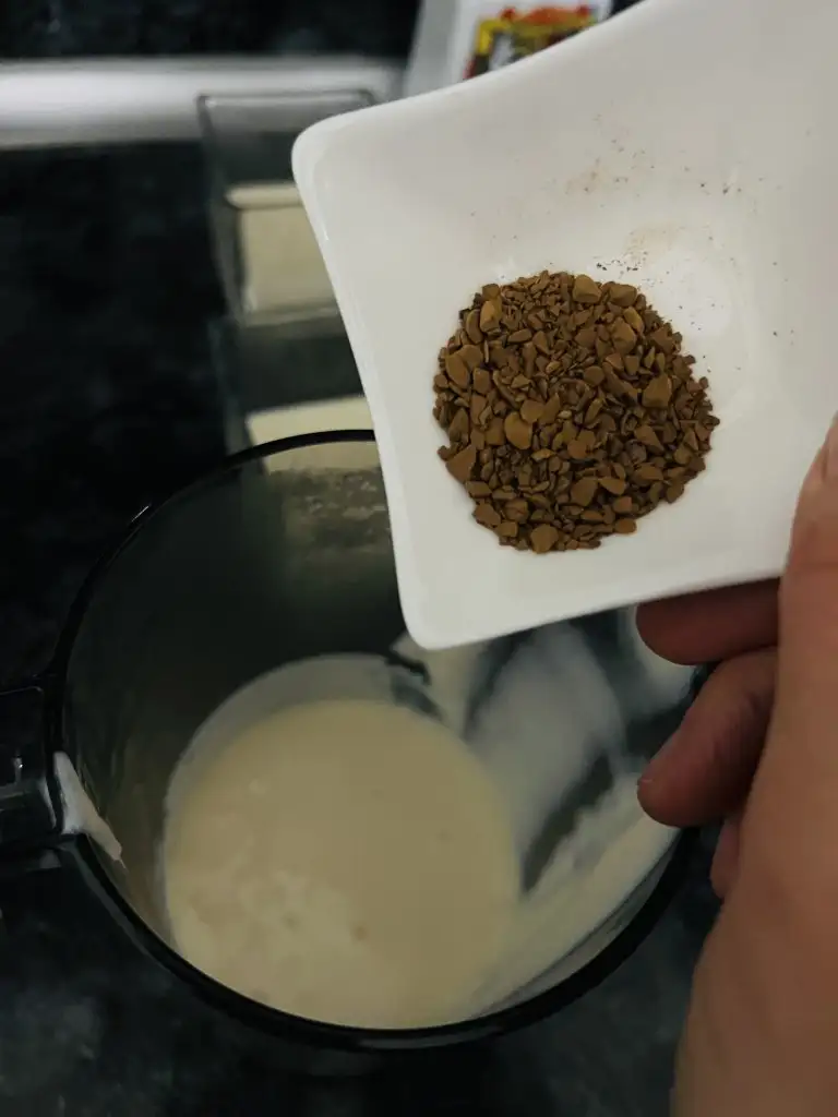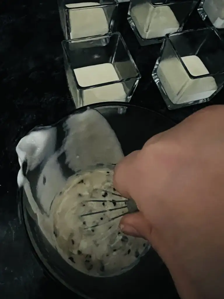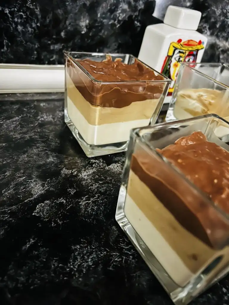Kaselerimizin tabanına muhallebiden azar azar paylaştırıyoruz.Kalan muhallebiyi 2 ye bölüyoruz. Yarısına granül kahvemizi ekliyoruz.Eki Görüntüle 3192598 Eki Görüntüle 3192599 Eki Görüntüle 3192600 Eki Görüntüle 3192601 Eki Görüntüle 3192602