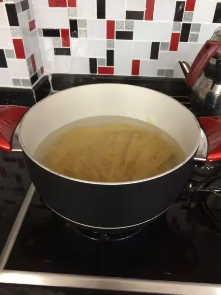 İlkönce tenceremize suyumuzu koyup kaynatalım.kAynayınca mAkarnamızı atalım sıvıyağını ve tuzunuda ilave ettikten sonra yapışmaması için iki tur karıştıralım ve haşlanmaya bırakalım.