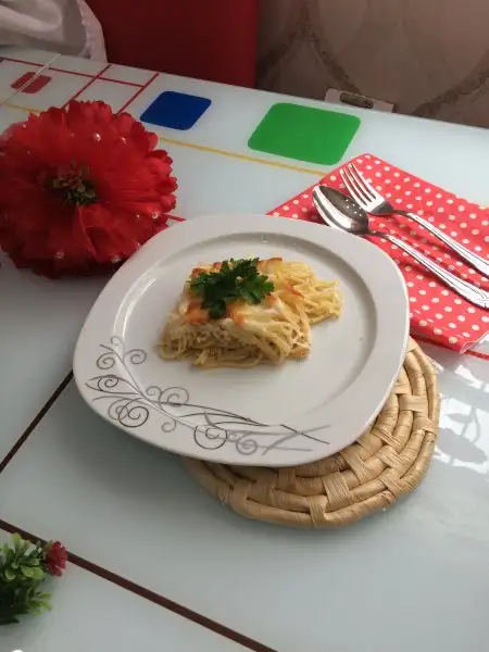 Borcamımıza döküp düzleyelim üzerinede rendelenmiş kaşar peynirini bolca serpiştirip 200 derecede fırınımıza verelim.üzeri altı nar gibi kızarıncaya dek pişirelim.Pişince servis edelim.HERKESE AFİYET OLSUN...YARIŞMADA BÜTÜN ARKADAŞLARIMA BAŞARILAR DİLERİM HERKESİN EMEĞİNE ELİNE SAĞLIK...