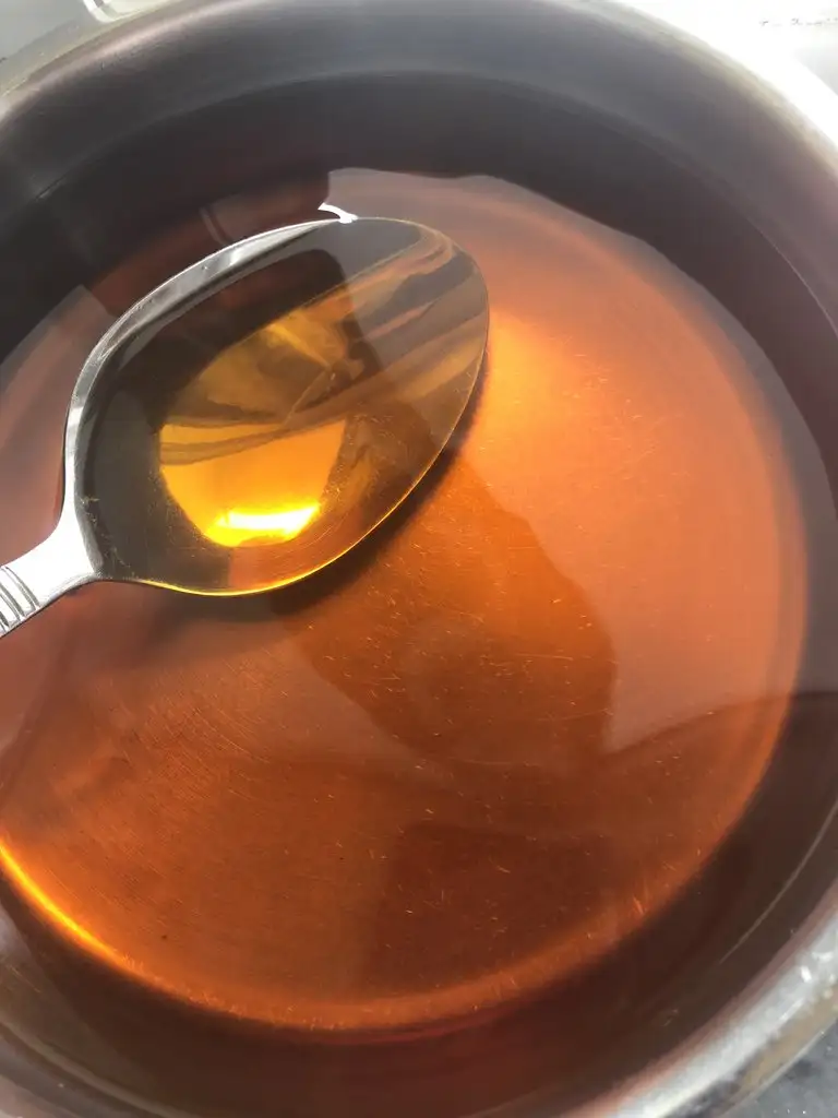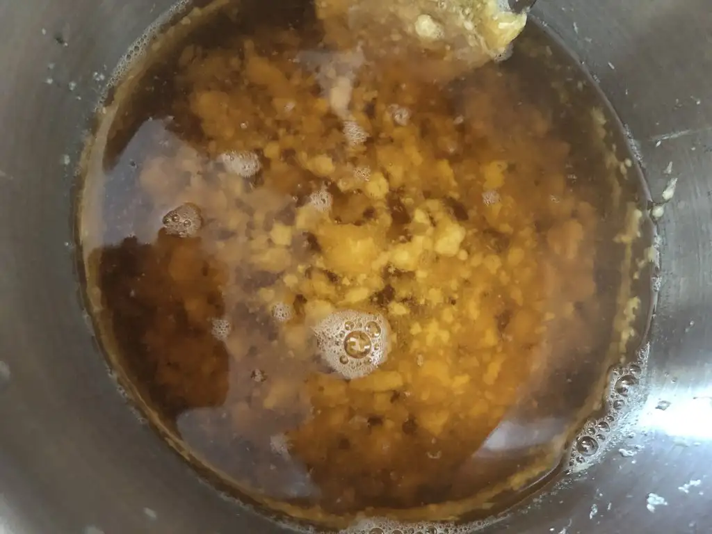 İlk önce şekerimizi tenceremize alıyoruz ve kısık ateşte eriyip rengi dönünce suyunu ilave ediyoruz. Önce katılaşacaktır sonra şeker eriyecektir bu sizi korkutmasın :) 5 dakika kaynatıp altını kapatıyoruz ve soğuması için kenara alıyoruz.