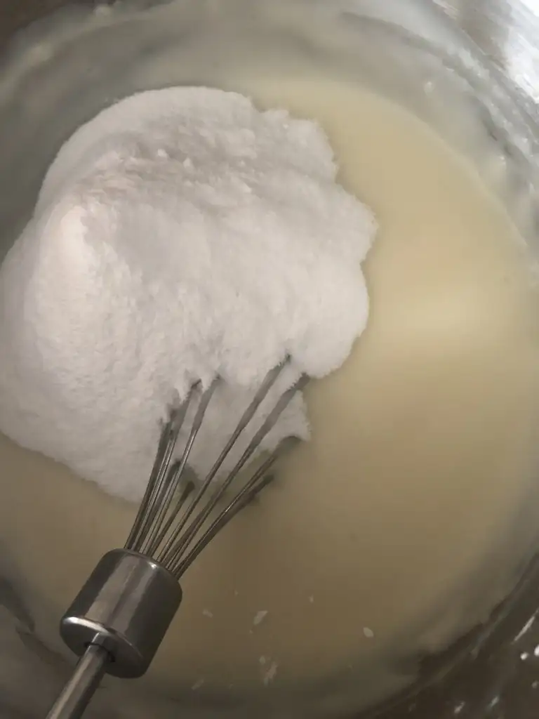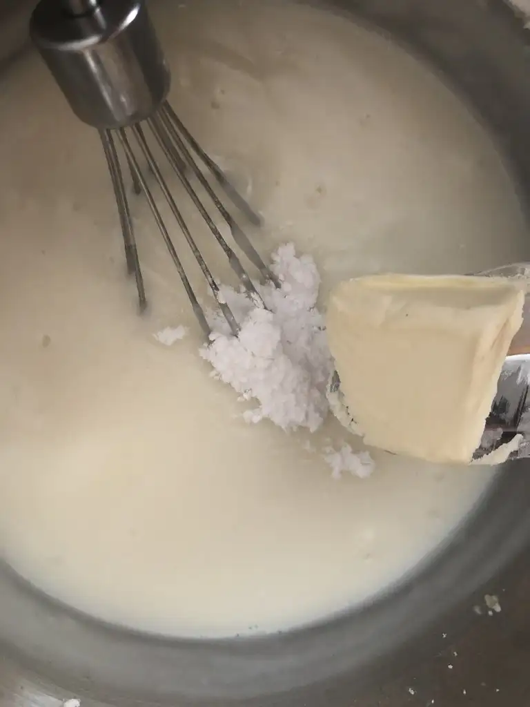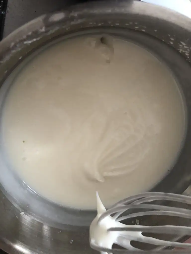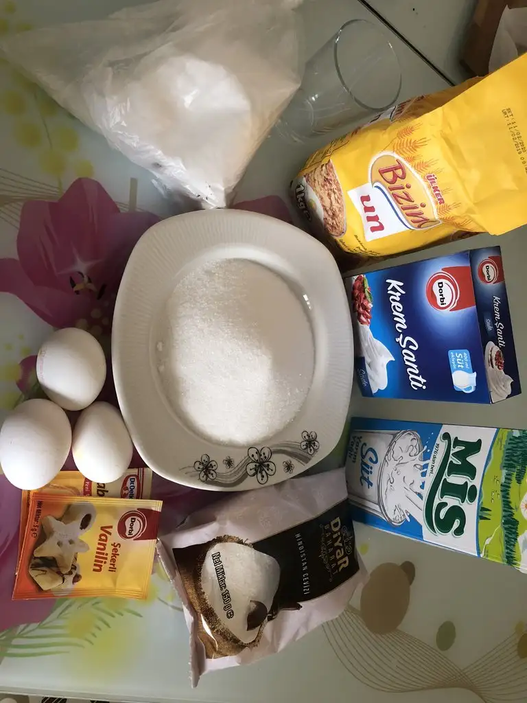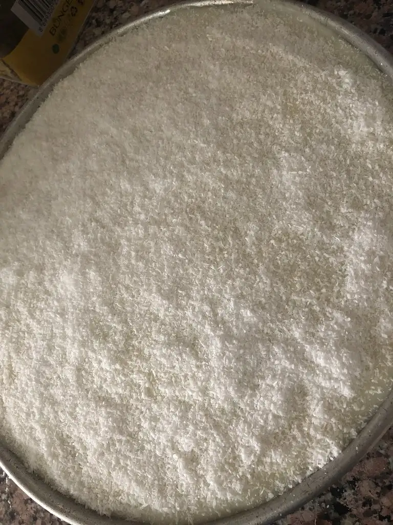 Bir litre sütü ocağa alıp şeker, un, nişastasını koyup karıştırıyoruz kaynadıktan sonra altını kapatıp bir paket vanilya yarım yemek kaşığı tereyağ yada margarini koyup tekrar karıştırıp soğumasını bekliyoruz soğuduktan sonra bir paket krem şantiyi de ekleyip mikserle iyice çırpıyoruz. Pürüzsüz olacak daha sonra kekimizin üzerine yayıyoruz. Üzerine Hindistan cevizi koyuyoruz.