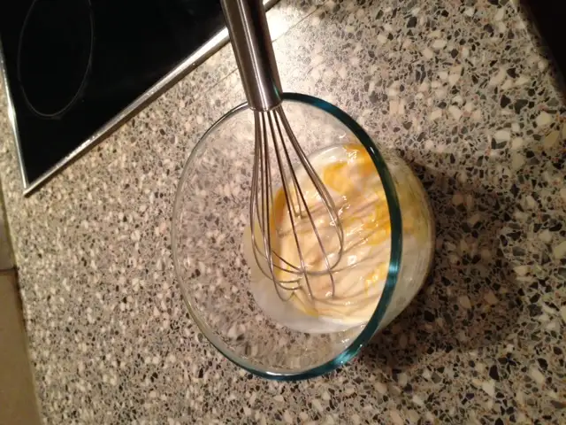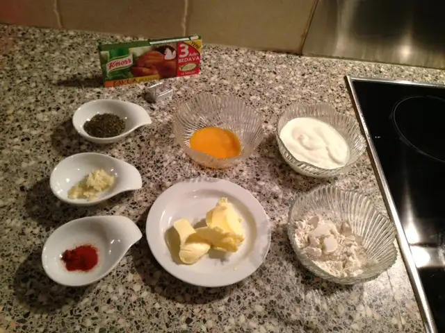 ayri bir kapta yogurt,yumurta sarisi ve sarimsagi ekleyip cirpiyoruz.