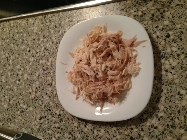 Corbamiz kaynaya kadar tavuk etlimizi didikliyoruz.Corbamiz kaynamaya baslayinca tavuk etlerimizi ilave edip blendirdan geciriyoruz.