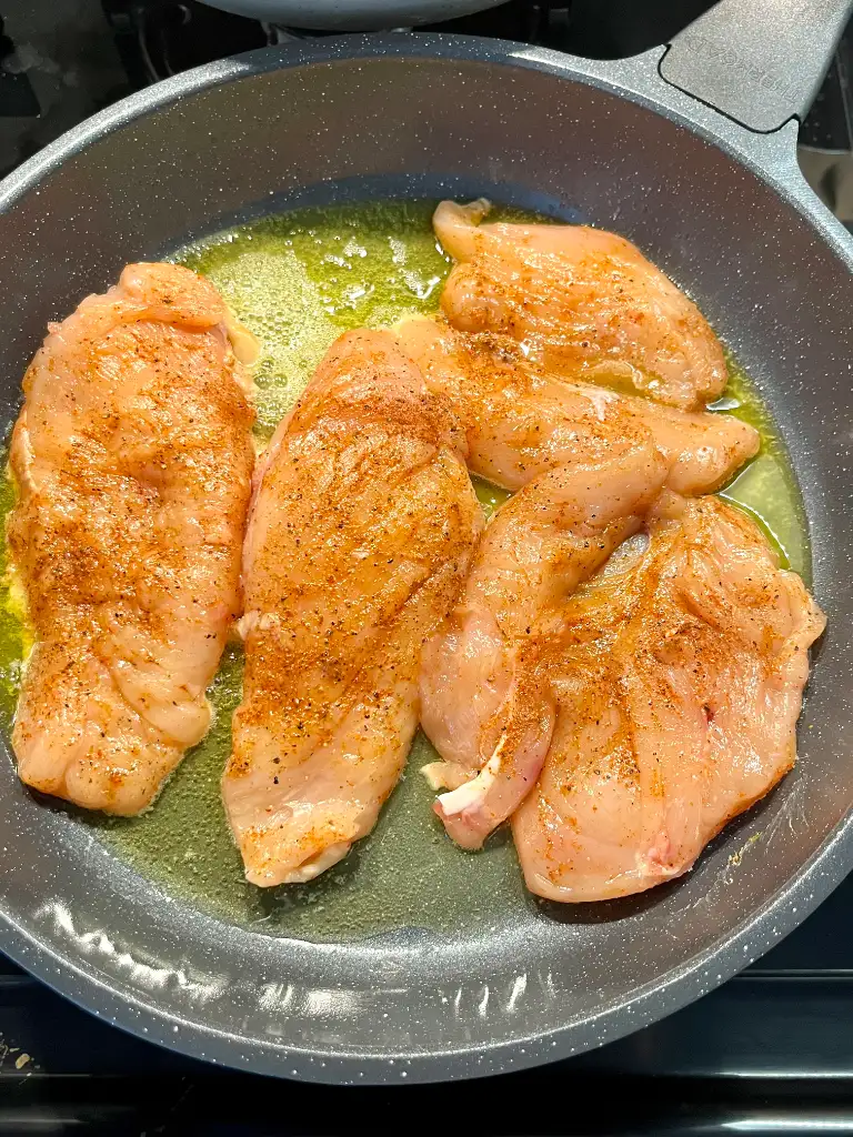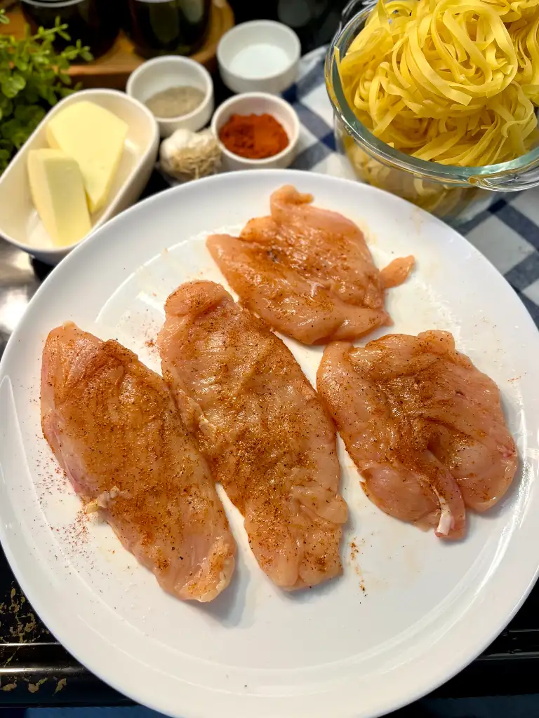 Tavuğu fileto şeklinde kesip iki tarafını da baharatlayalım.
