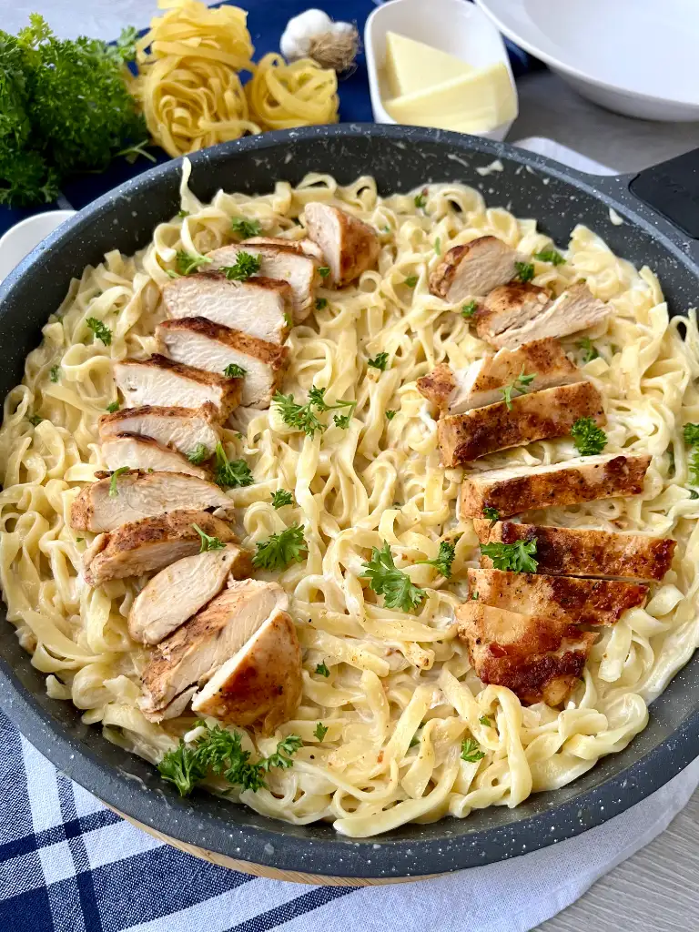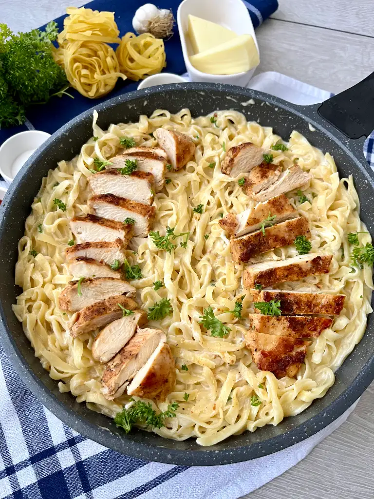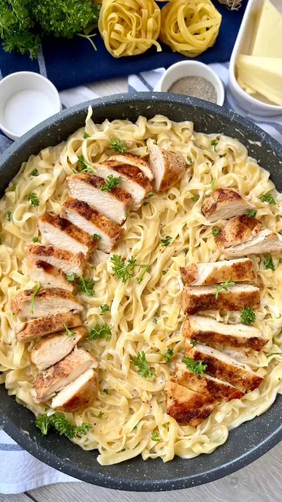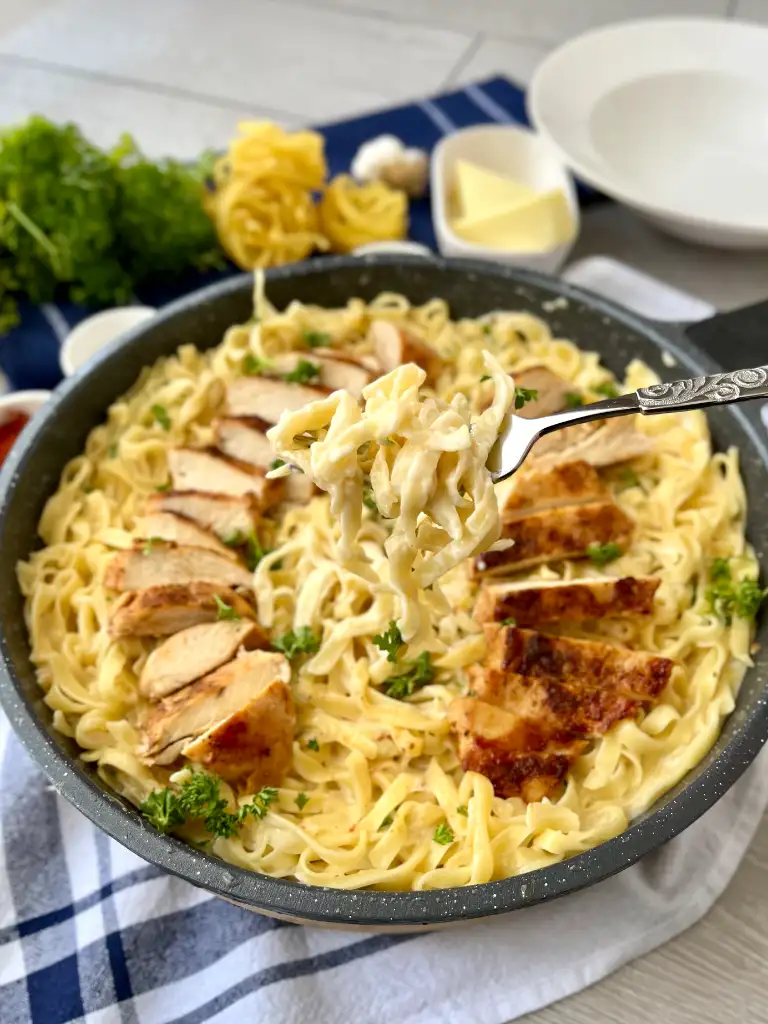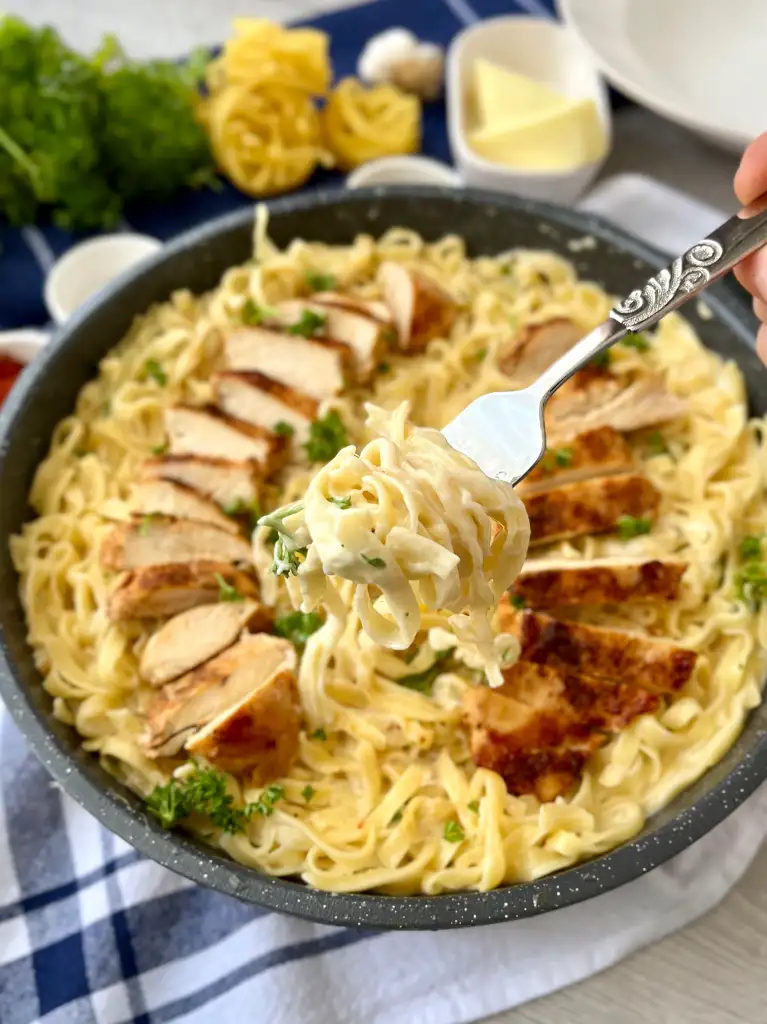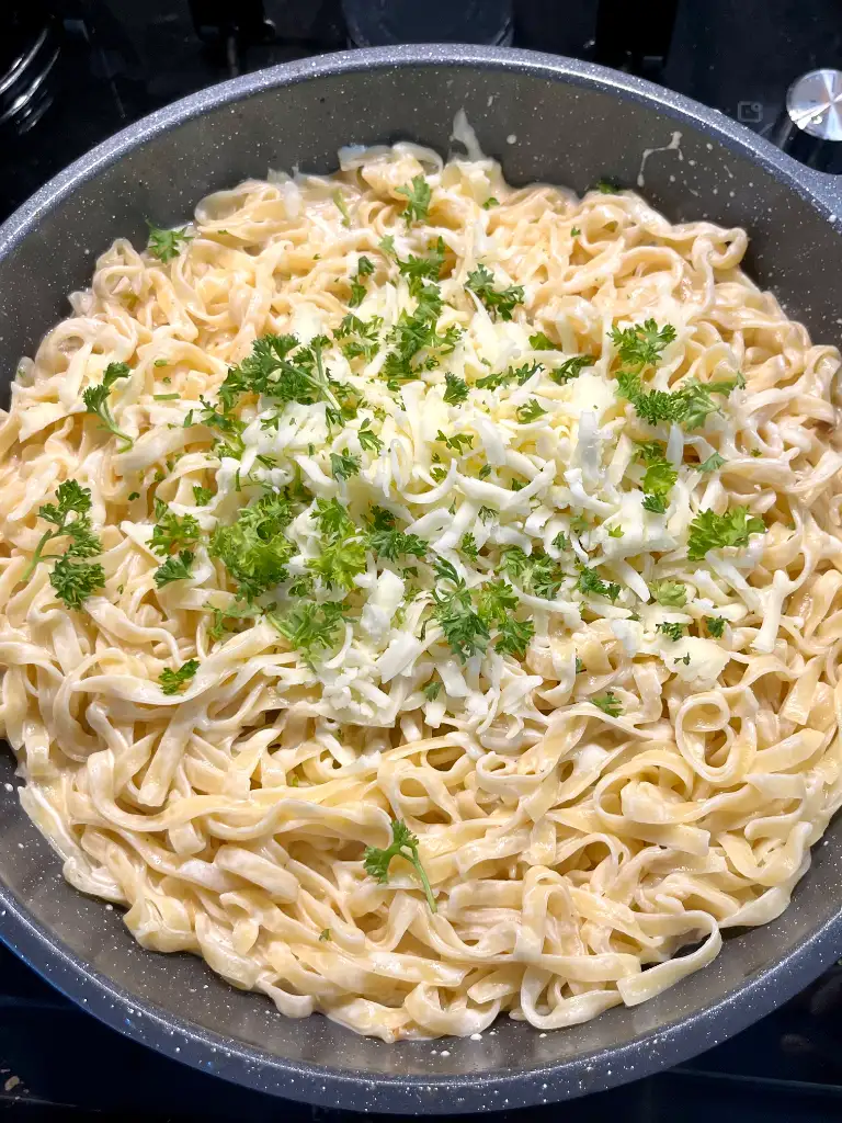 Tavukları kenara alıp ince kıyılmış sarımsağı hafif kavurup kremayı ilave edelim. 1 su bardağı makarnanın suyundan ekleyelim Eki Görüntüle 3577740 Eki Görüntüle 3577741