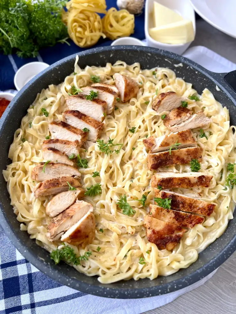 Bu ay makarnalar ile yarışıyoruzBende çok sevdiğimiz kremalı tavuklu makarna yapacağım.