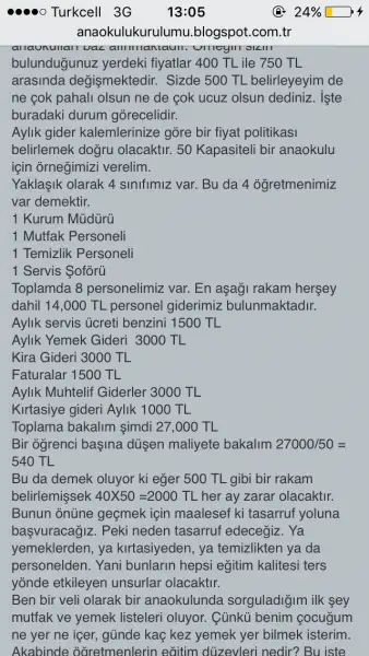 Sağol canım. Artık çok çalışan bayan var ee bu bayanların çocukları hep kreş e falan gitmesi gerekiyor.Bu işler hiç kolay olmuyor canım. Okul öncesi öğretmeniyim ama çok teferruatlı şeyler bunlar. Karlı gibi gözüküyor ama sorumluluğu düşününce soğuyor insan. Yer olarak uygun diye düşünürsün umduğun gibi çıkmaz bilemezsin ki sonuçta. Çok ince ayrıntıları düşünerek bu işe başlamalısın. Hayırlısı olsun inşallah.