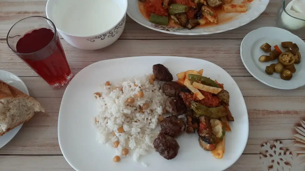 Köfte kızarttım ,nohutlu pilav, süzme yoğurt, soğan, acı biber turşusu, komposto günün 2. öğünü de tamamdır 😊