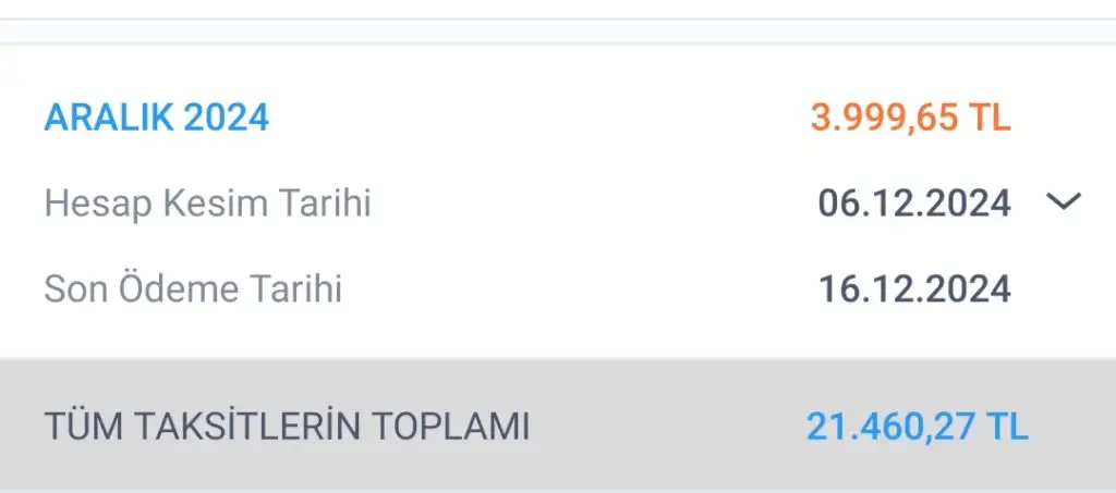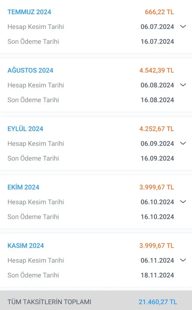 Kredi kartımın taksitli borcu aylar bazında şu şekilde