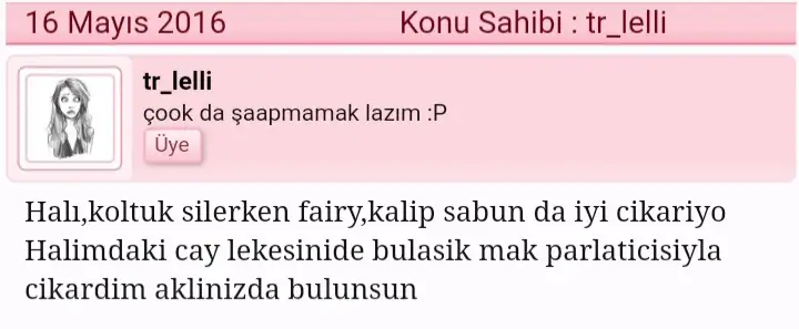 evet parlatici ve kalip sabun cok kullanirim sabah resmen sokdan mi ne aklim durdu.Kuzu bunu senden öğrenmiştim tee kaç sene önce.Hatta ss almışım şimdi sen deyince resimlerden buldum.