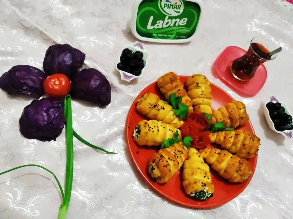 Hem şekli ile hem tadı ile hem sahurda hem çay saatlerinde kolayca yapılabilecek bir poğaça. Afiyet olsun.
