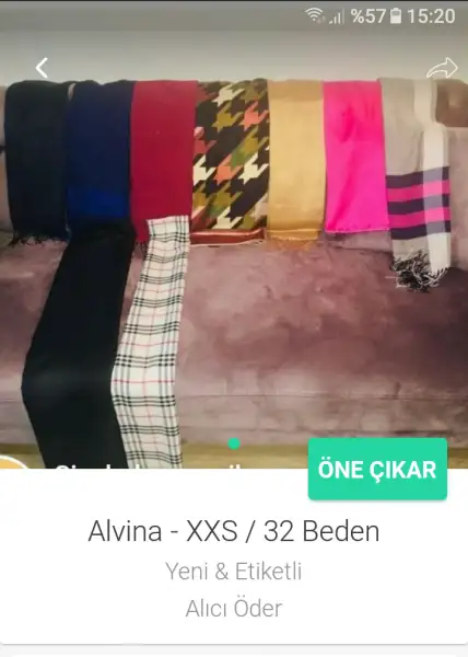 Kendim hazir şal kullanmaya aliskin oldugum icin satiyorum. 2 tane alvina salim var sadece 50 tlye almistim tanesini. Hic birinde igne izi bile yok