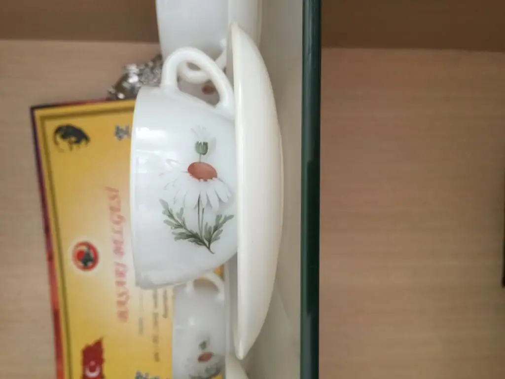Ananemin çeyizinden beyaz 5'er adetfincan ve tabağı var