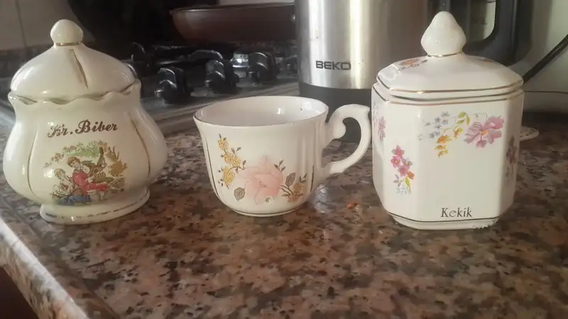 Merhabalar, bizde bu tarz eski baharatlıklar fincan takımları vs var. kimisinin kenarlarında küçük aşınmalar,çatlaklar oluşmuş. Eğer istediğiniz bu tarz şeylerse daha da ararım fazlası çıkar mutlaka.ceyizinizden kalma ya da annenizin eskilerden kalma porselenleriniz pirinç, gümüş kaplama objelerinizi, ayna çerçecesinden taragından,fincan takımları, eski takılar,çerçeve,saat,telefon,çakı, el feneri, sandık,ahşap ev eşyası vb. aklınıza ne geliyorsa evde kullanmadığınız modası geçmiş ürünleriniz uygun fiyata alıyorum..