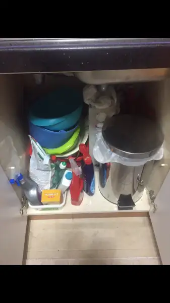 Kalkıyım da yapıyım bariiiMutfak lavabosunun altindaki dolabi temizlemek duzeltmek oncesi sonrasi fotografliareser