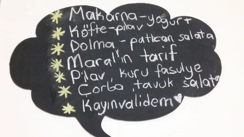 BUGÜNÜN ÖDEVİ: Haftalık yemek listesi oluşturmak