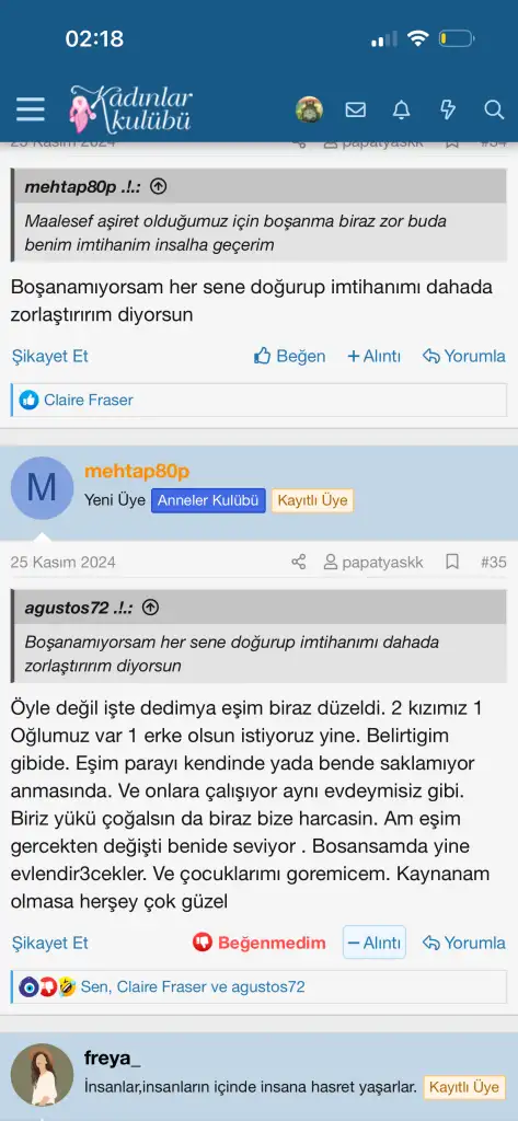 Fazla alıngan davranıyorsunuz. Konu sahibi yaşadığı problemleri anlatmış hemen saldırmaya gerek yok. Onun anlattıklarından daha kötüsünü her gün doğuda yaşayan kadınlar burda kendisi anlatıyor. Bakın şu aşağıda ekran görüntüsü koyduğum mesajları daha birkaç gün önce burda okudum. Bu hanımefendi doğulu 21 yaşında ergen denecek yaşta bir kadın. 6 yıldır evli ve 4.çocuğuna hamile olduğunu, sırf erkek çocuk olması için hamile kaldığını, kaynanasından çok eziyet çektiğini, boşanma diye bir şeyin onlarda olmadığını anlatmıştı. Ben hayatımda doğuya gitmemiş bir insanım ille de şöyle böyle kültürleri var demiyorum. Ancak orda yaşayan hanımlar her gün burda zibilyon tane şey yazıyolar ve çektikleri çileyi kültürlerine bağlıyolarken hayır böyle şeyler yok veya her yer böyle demek de kendini kandırmaktan başka bir şey değilMirta, seninde dediğin gibi doğuda gerçekten hoş olmayan bazı gelenekler var fakat konu sahibini durumu farklı, kendisi çok ön yargılı.