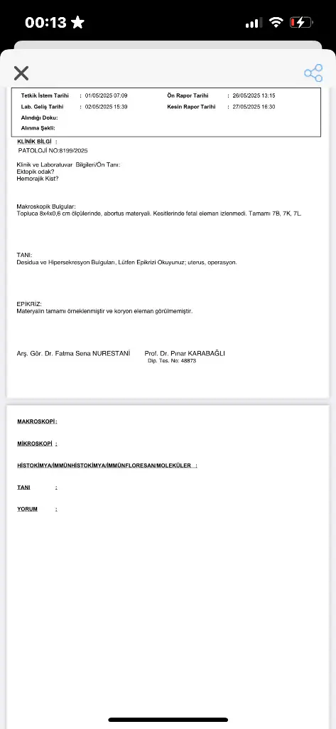 İşlemi yapan doktor tıp fakültesinde telefon veya watsapla bilgi vermiyorlar şuanda oraya gidecek durumda olmadığım için burdan anlayan olur yorumlanır diye burda paylaştım teşekkür ederim yinede laylayloomm