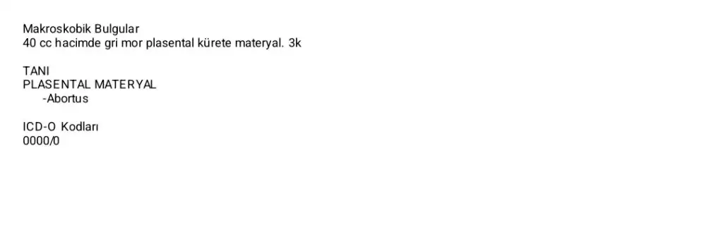 Sanırım düşüklerde sadece mol gebelik olup olmadığına bakıyorlar. Öyle bir şey de yok gibi. Normal küretaj materyali