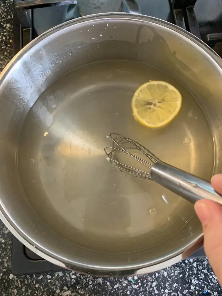 İlk olarak şekeri suyu ve limon suyunu birlikte yaklaşık 15 dk kaynatıp ateşten alıyoruz.
