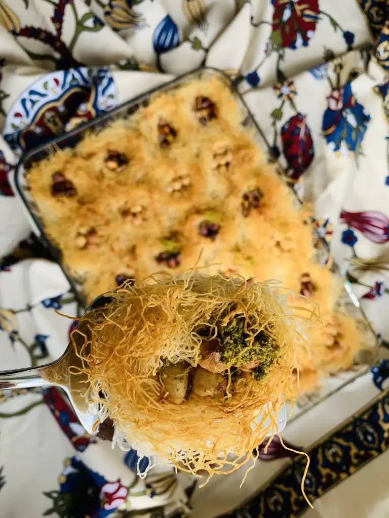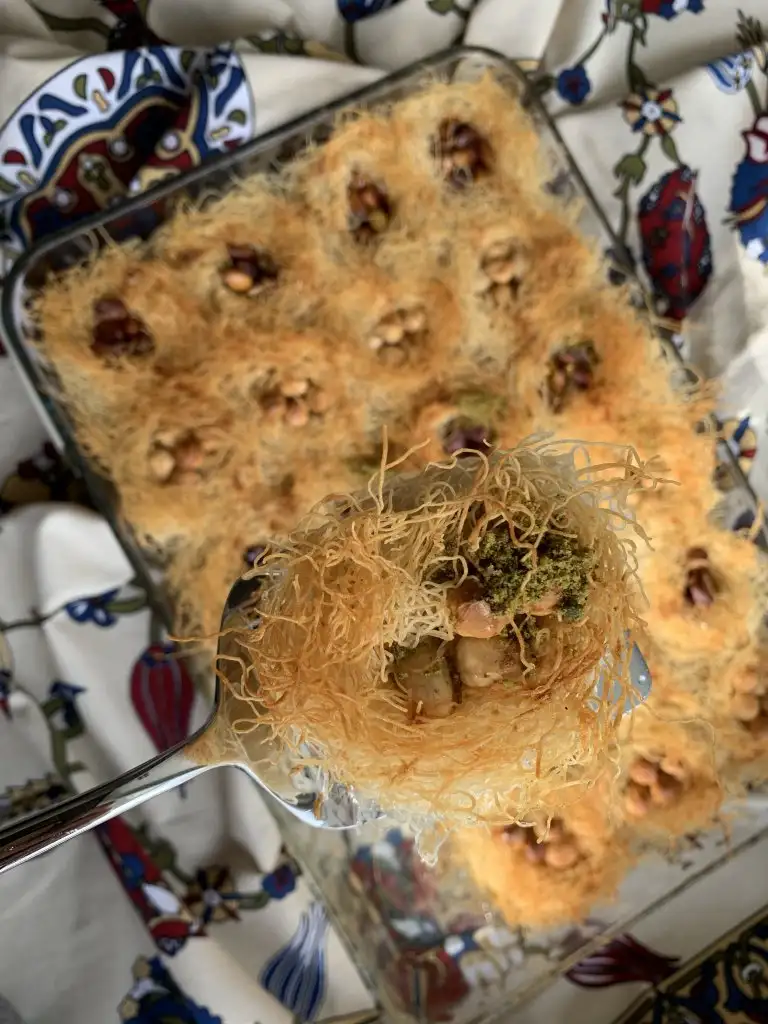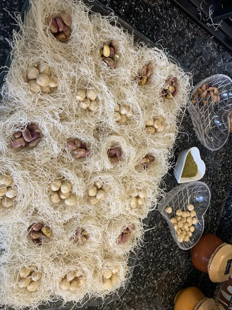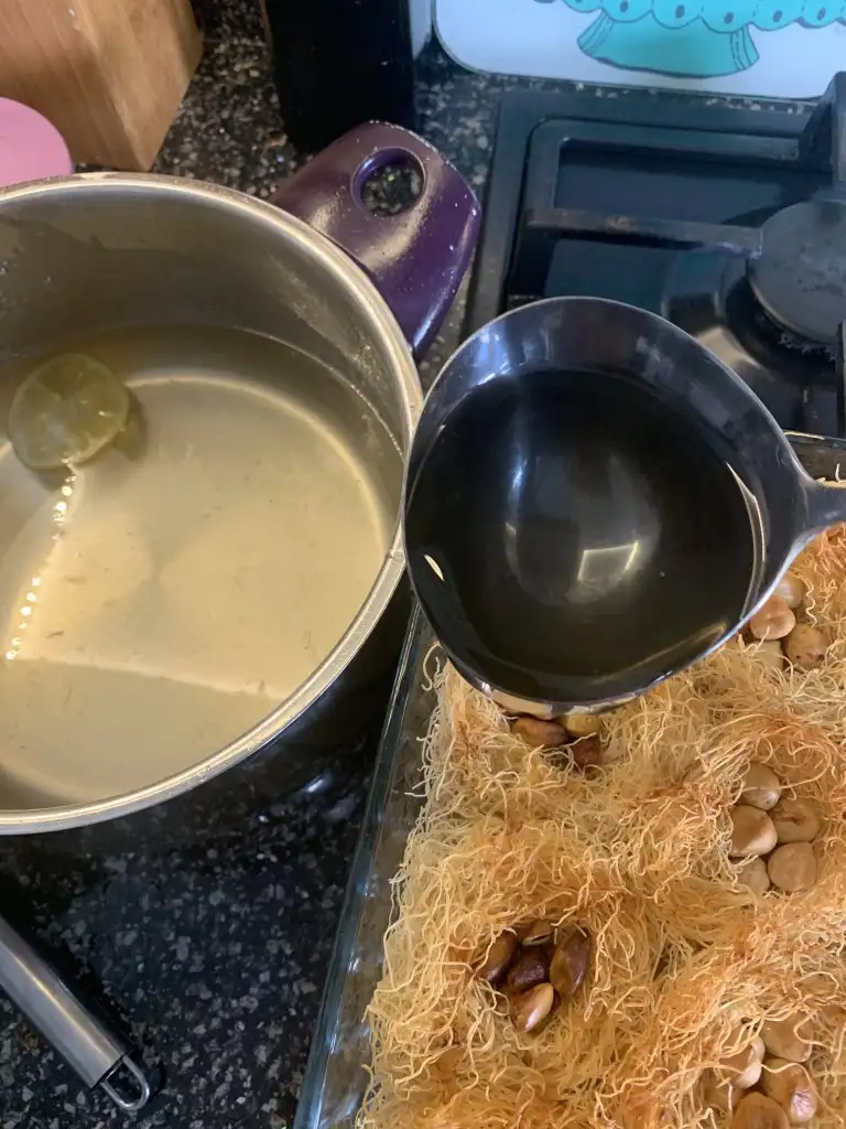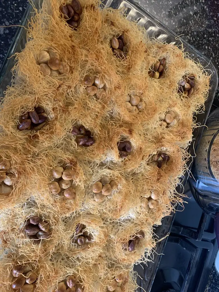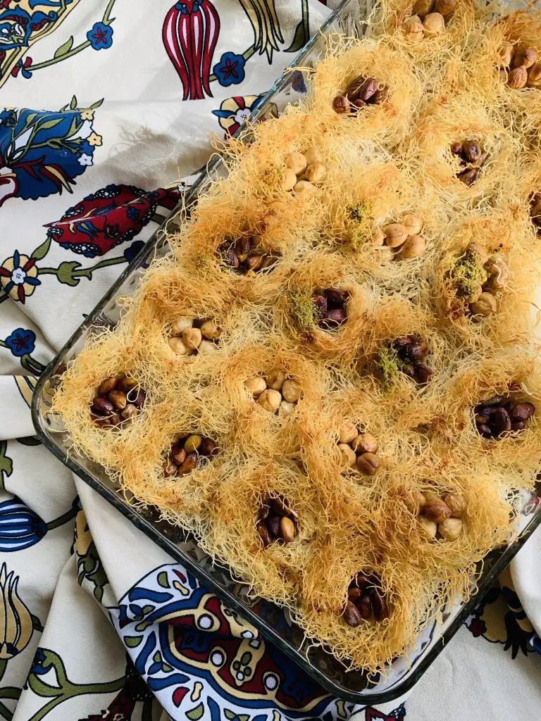 200 derecelik ısıtılmış fırında 20-25 dk kadayıflar altın sarısı rengi olup katılaşana kadar pişiriyoruz.