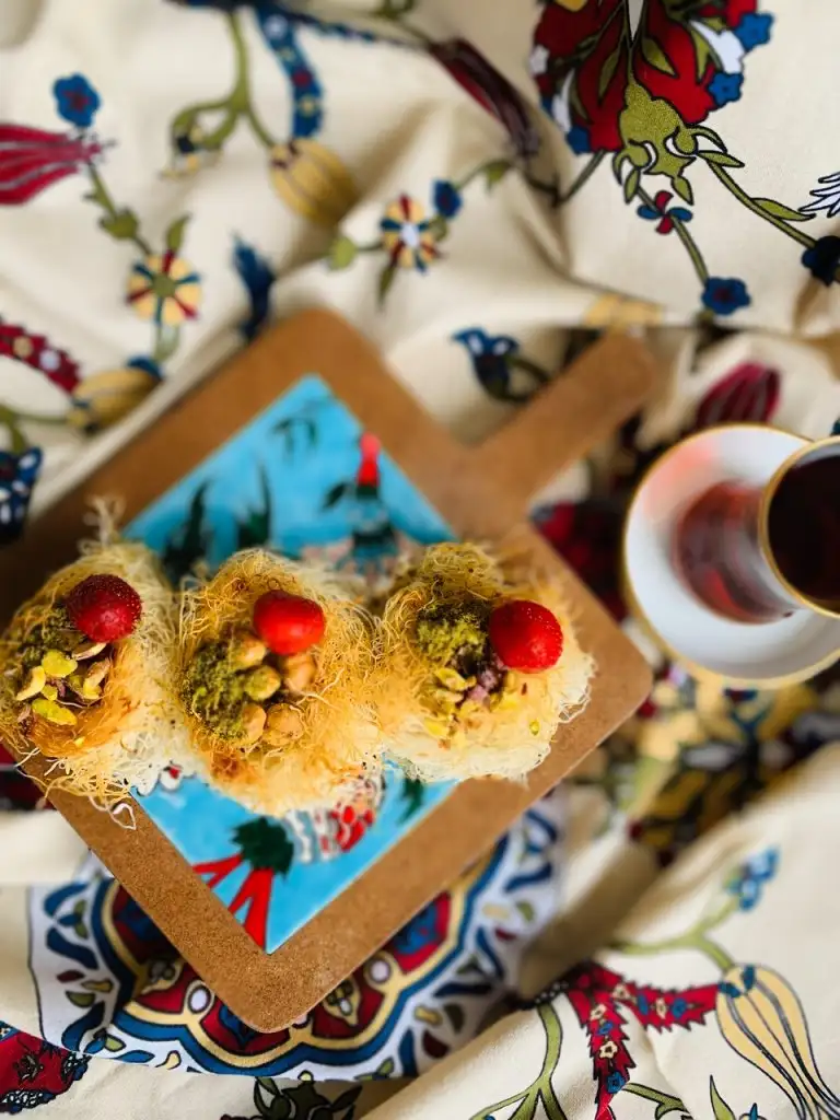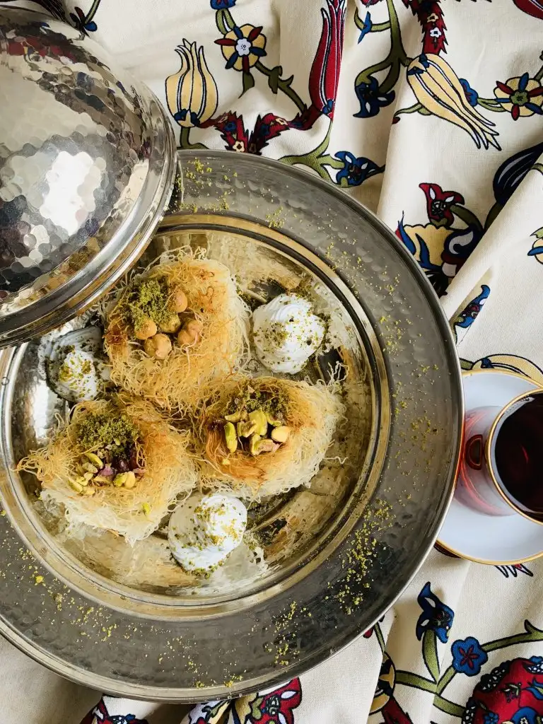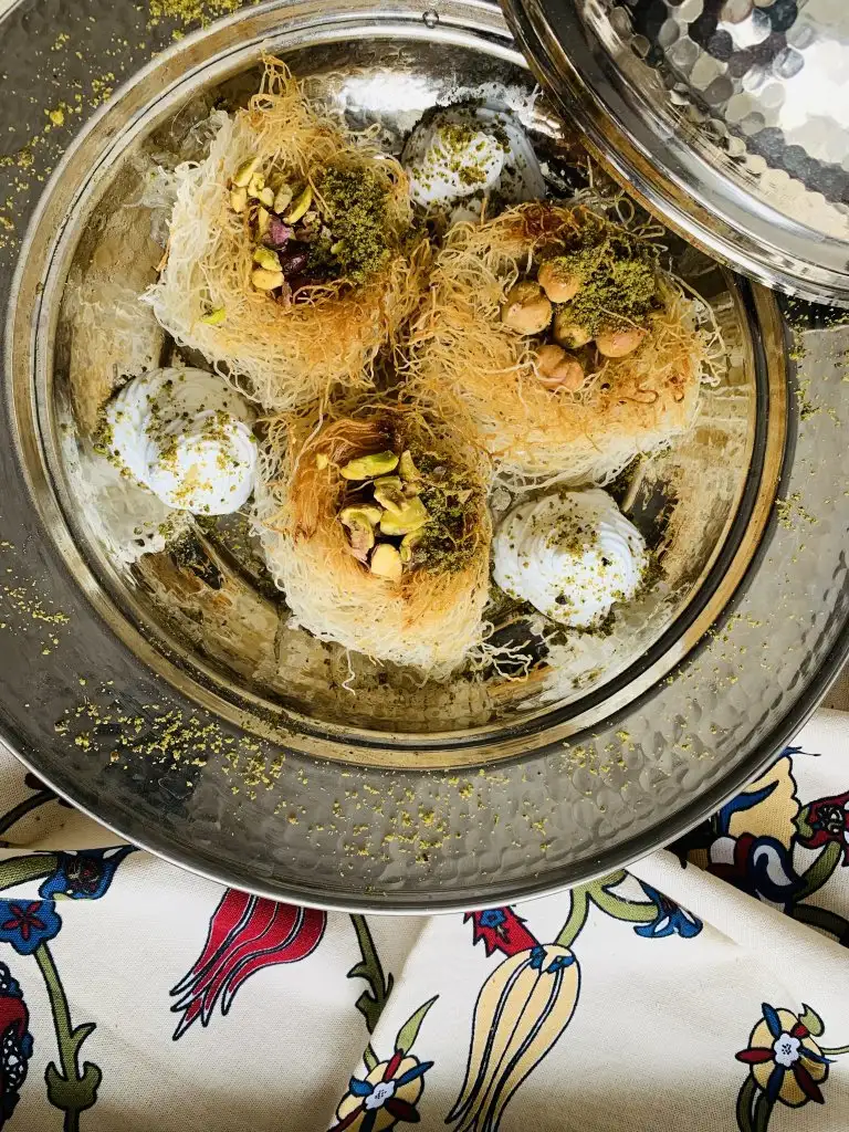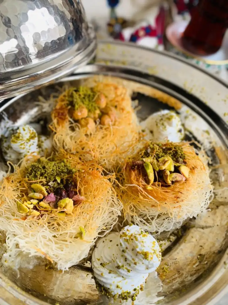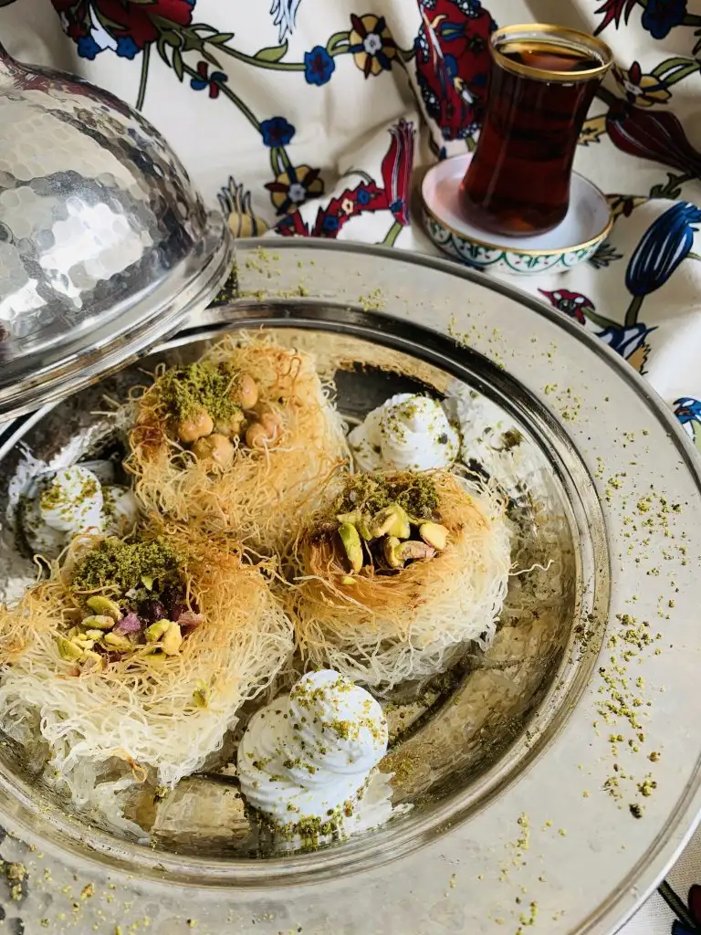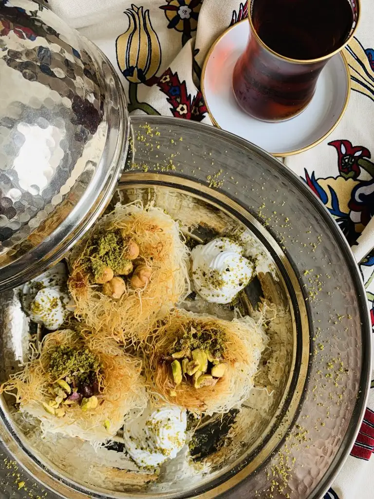 200 derecelik ısıtılmış fırında 20-25 dk kadayıflar altın sarısı rengi olup katılaşana kadar pişiriyoruz.