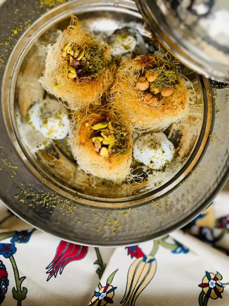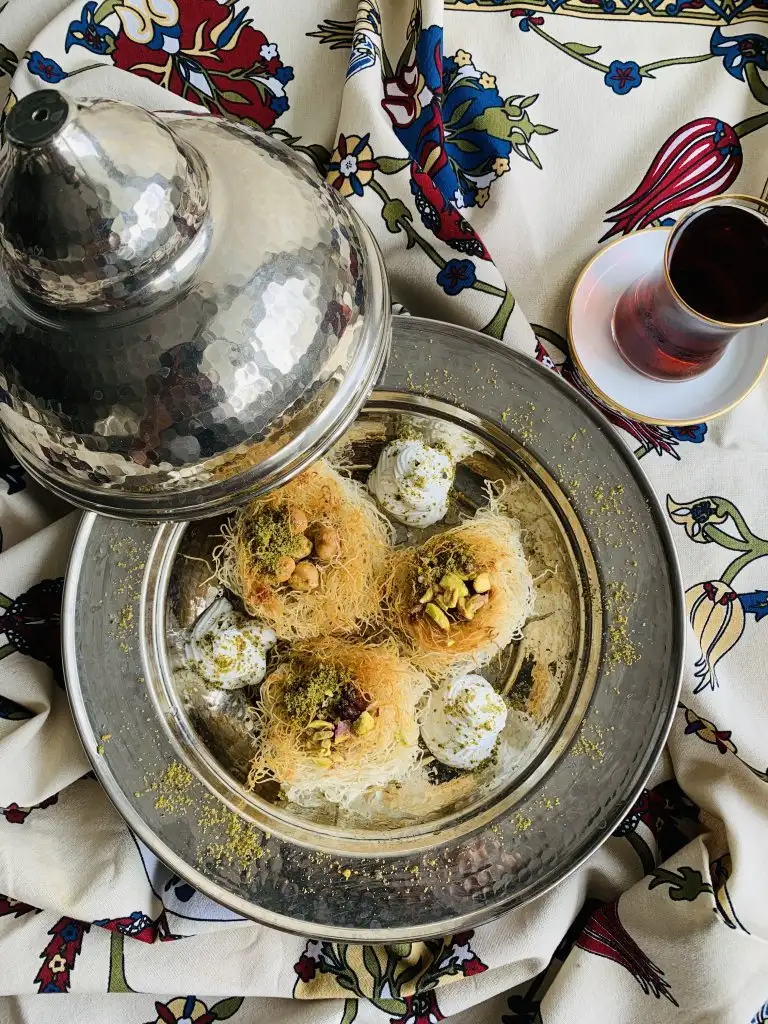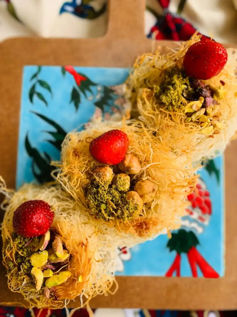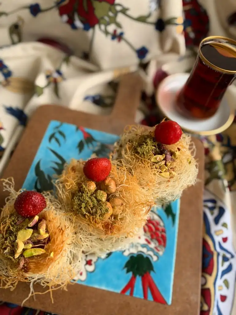 Fırından çıkardığımız kadayıfları tamamen soguyan şerbet ile birleştiriyoruz. Üzerini süsleyip servis edebiliriz.