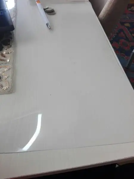 Cam görünümlü kalın şeffaf silikon örtüler var. Aynı cam gibi duruyor. Daha önce beyaz masam için kullanmak istemiştim memnun kalmamıştım. Çünkü hava kabarcıkları oluşuyordu. Gri bir görüntü veriyordu. Ahşap da nasıl olur bilmiyorum tabi..