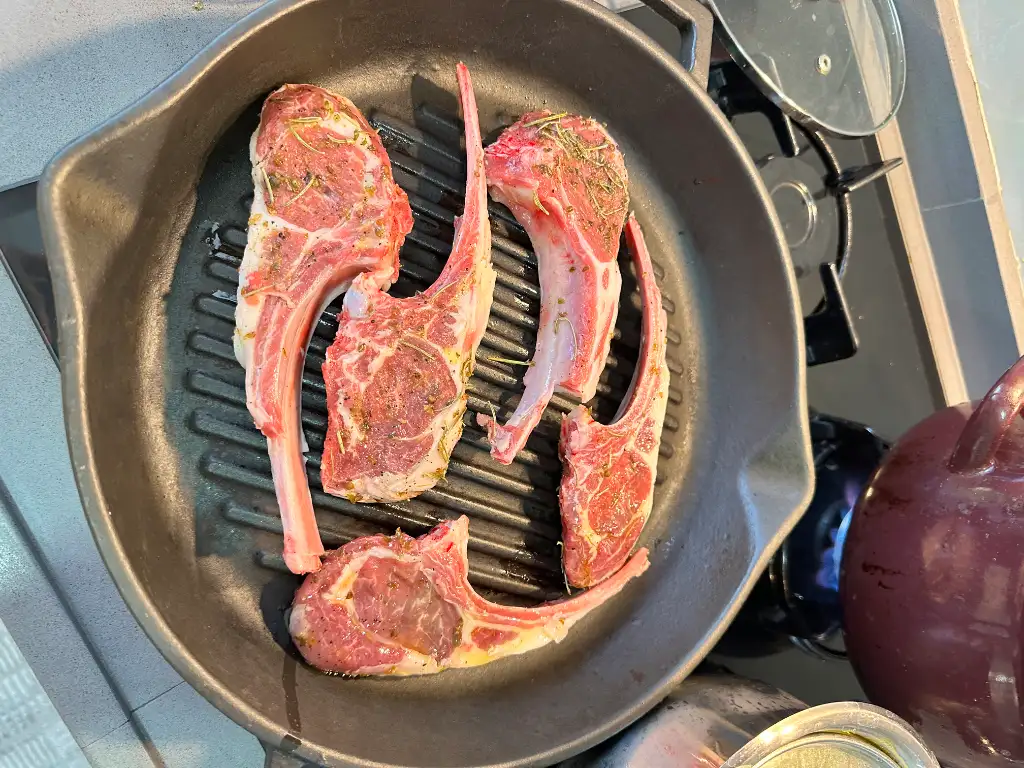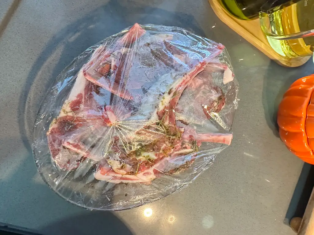 1- zeytin yağı ve baharatları bir kapta karıştıralım pirzolalılarının her iki tarafına da bu karışımdan sürelim üst üste aynı kaba koyalım streç bir ile kapatarak en az üç 4 saat bekletelim ben bir gece önceden husolayıp dolaba kaldırdım.