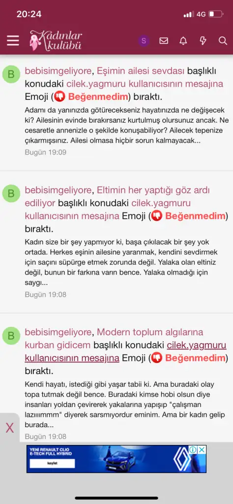 Üslubu düzgün olanlara değil, sadece size hak verenlere düzgün cevap veriyorsunuz. Herkes size hak versin de birlikte kayınvalidenizi çekiştirin istiyorsunuz ziraa açık bir şekilde “ hak vermeyen yazmasın” demişsiniz. Burası dedikodu forumu değil üzgünüm. O yüzden kimse sizin istediğinizi yazmak zorunda değil. Herkes kendi istediğini yazabilir eğer işinize gelmeyecekse konu açmayın. Burada kimsenin yorum seçme halkı yok yani sizin de yok. Ayrıca taraf belli oldu ne demek ya Allah aşkınaAyy ben de yanlış anlamışım pardonnn şimdi taraf belli ettiniz ya anladım niyetinizi. Muhatap olmak istemeyen benim bu aradaya da aman nasıl anlarsan anla çok güzel çirkinleştim napicaktim bana taş atana teşekkür mü edeyim zaten üslubunu doğru kullanan insanlara nasıl saygılı olduğumu da gormussunuzdur ya da bu da sizin işinize gelmediii önemli değil