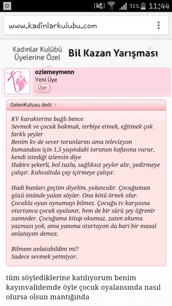 11 aylık bir çocuktan bahsediyoruz egoları bir yere bırakın. Araları ara açılmış kayınvalidesiyle detay yazmamış sonuçta