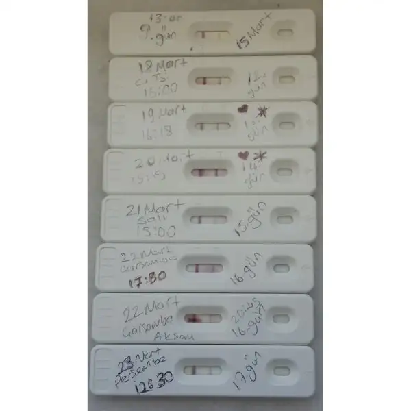 Canim inanki o testleri tam 11 ay once kullandim ben ve suan cekmeecede atılıyor hepsiİnşallah canım...artık zaten takmamaya ve bukadar takip edip kafayı yememeye karar verdim psikolojim bozulma noktasına geldi artık günüm ovulasyon testlerini arastirmak ve internette hamilelikle ilgili şeyleri arastirmakla geçiyo...Bugün zaten son 2 yumurtlama testim kalmıştı onlarda yaptım kurtuldum akşam 7 buçukta yaptığım yine çok koyu olmasa da belirgin çıktı artık yormuycam kafamı neden diye üstüne düşmiycem en azından 19 ve 20 Mart ilişki oldu nasipse tutar değilse yapacak bişey yok malesef