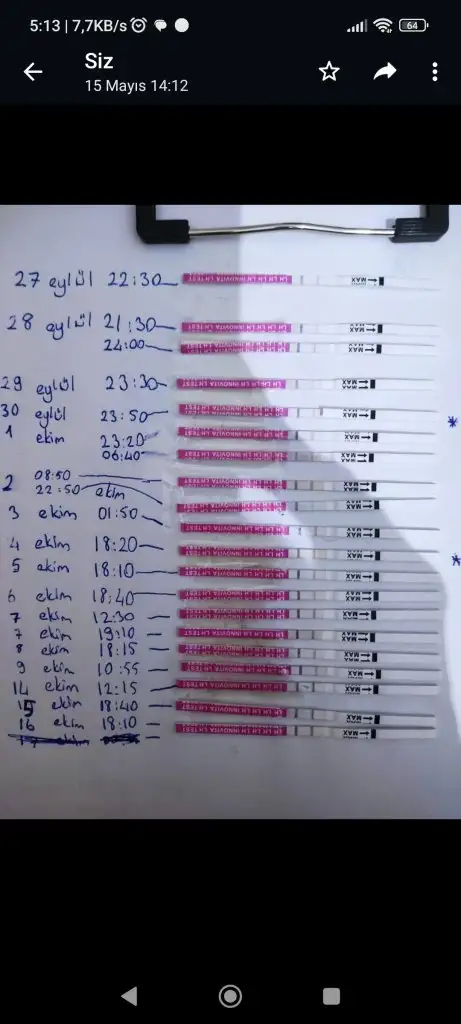 Canım bu ovülasyon testleriyle kafayı yemiş birisi olarak asla uğraşmamanı tavsiye ederim. Kesinlikle tecrübesine güvendiğin bir kadın doğum doktoruna gitmelisin. Görseli ekleyeceğim. Kısır olduğumu bu yıl Nisan ayında öğrendim boşuna bu saçma işe yaramaz testlere para döküp umut beslemişim yıllarca!! Yumurtamı çatlıyor gösteriyor üstelik yetmez gibi defalarca gösteriyor ayda neredeyse hergün.