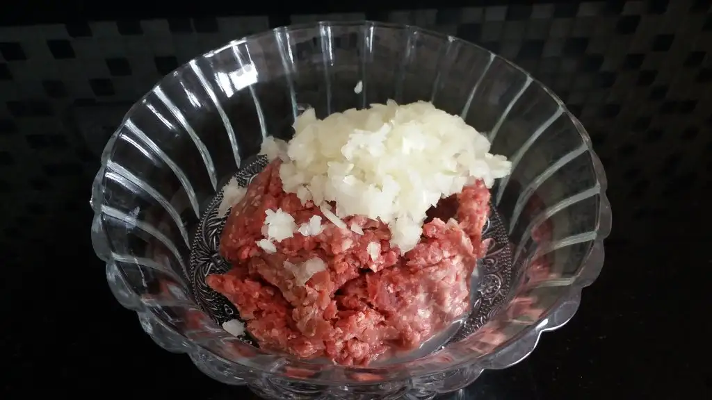 Kıymamızı derin bir kaba alıp robotta ince çektiğimiz soğanı ekliyoruz.