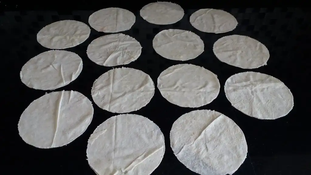 Küçük çorba kasesini ters çevirip bıçak yardımıyla yuvarlak yufkalar elde ediyoruz.